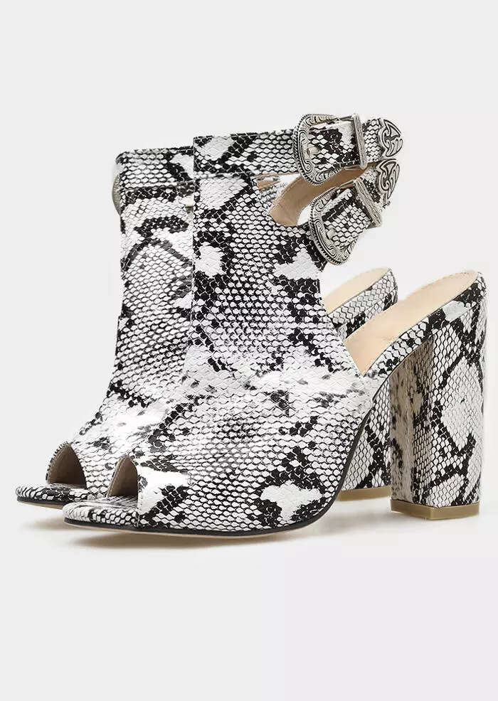 • Snake Skin Printed Hollow Out Heeled Sandals