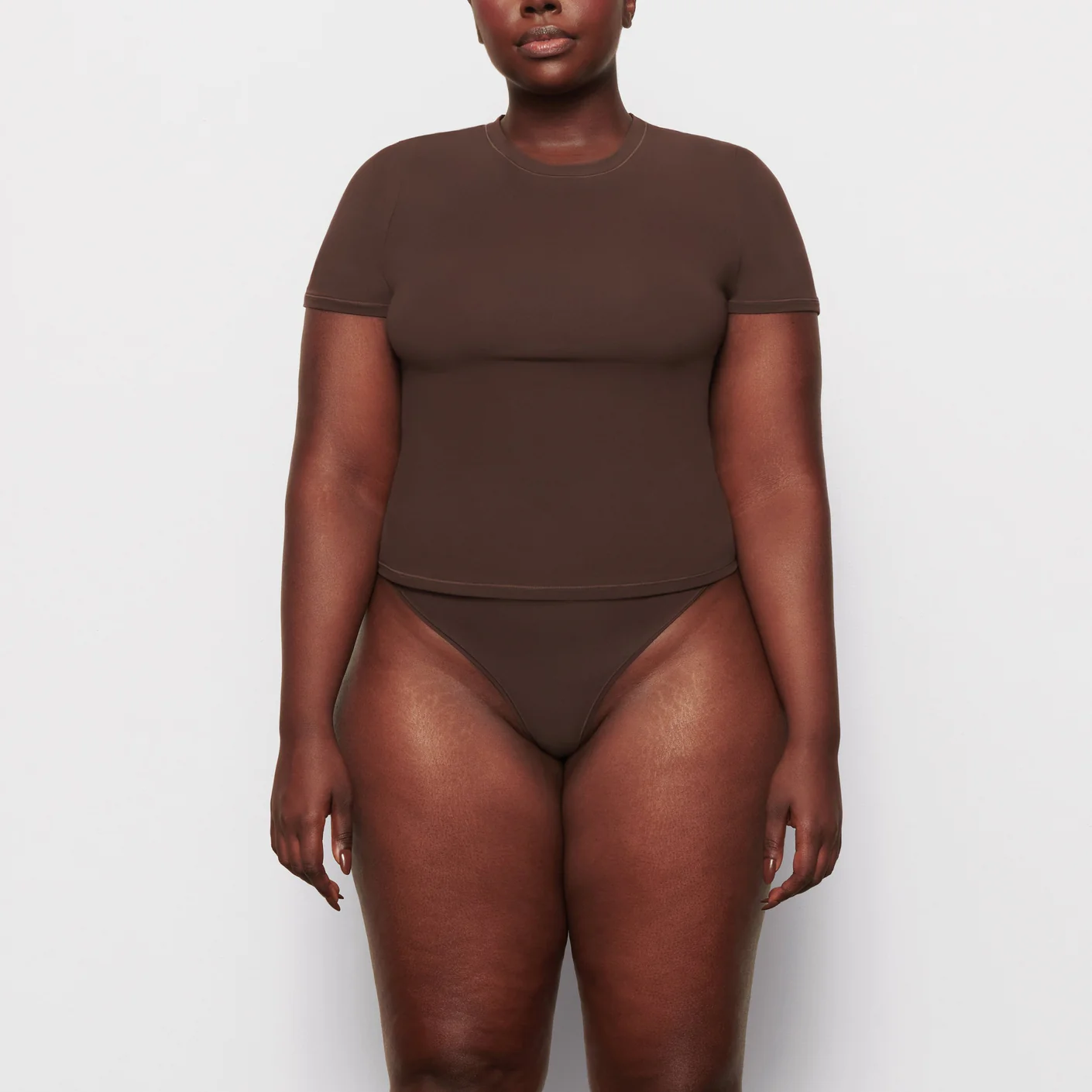 - amina is size 2, 34b, and 5’ 8", wearing skims s